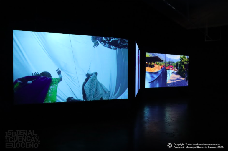 La artista ha combinado imágenes profesionales y amateur, tomadas por algunos de los participantes con sus celulares, aludiendo a la importancia de la accióncolectiva desde diversos ángulos para enfrentar la actual crisis socioecológica.
