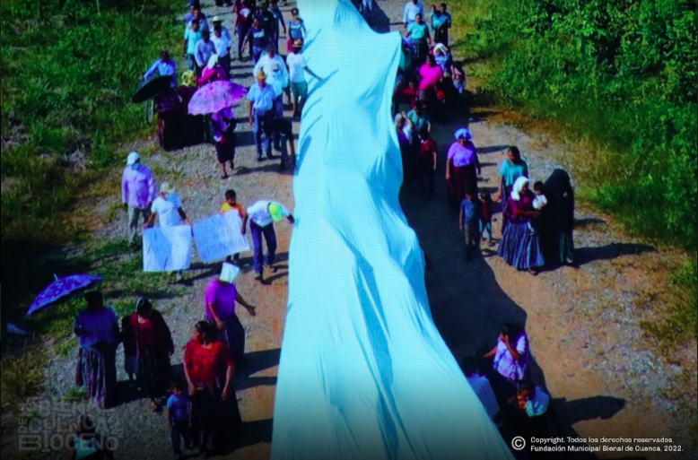 A este performance colectivo se unieron más de mil niñas, niños, hombres y mujeres del Ixcán (Quiché), Chisec (Alta Verapaz), El Estor (Izabal), Champerico (Retalhuleu), Monte Olivo y San Juan Chamelco (Alta Verapaz) que coreaban las consignas: “libertad para el agua”, “luchamos por la vida”, “luchamos por el agua”, “el agua es vida, no mercancía”.